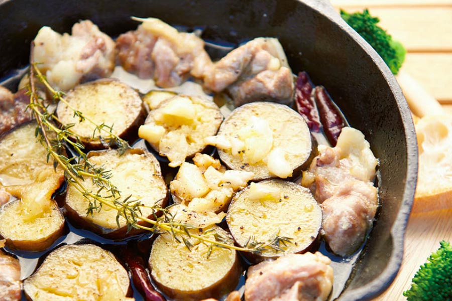 油なじみがよく、食材が焦げつきにくい素材です。適温で調理することで料理がきれいに仕上がります。