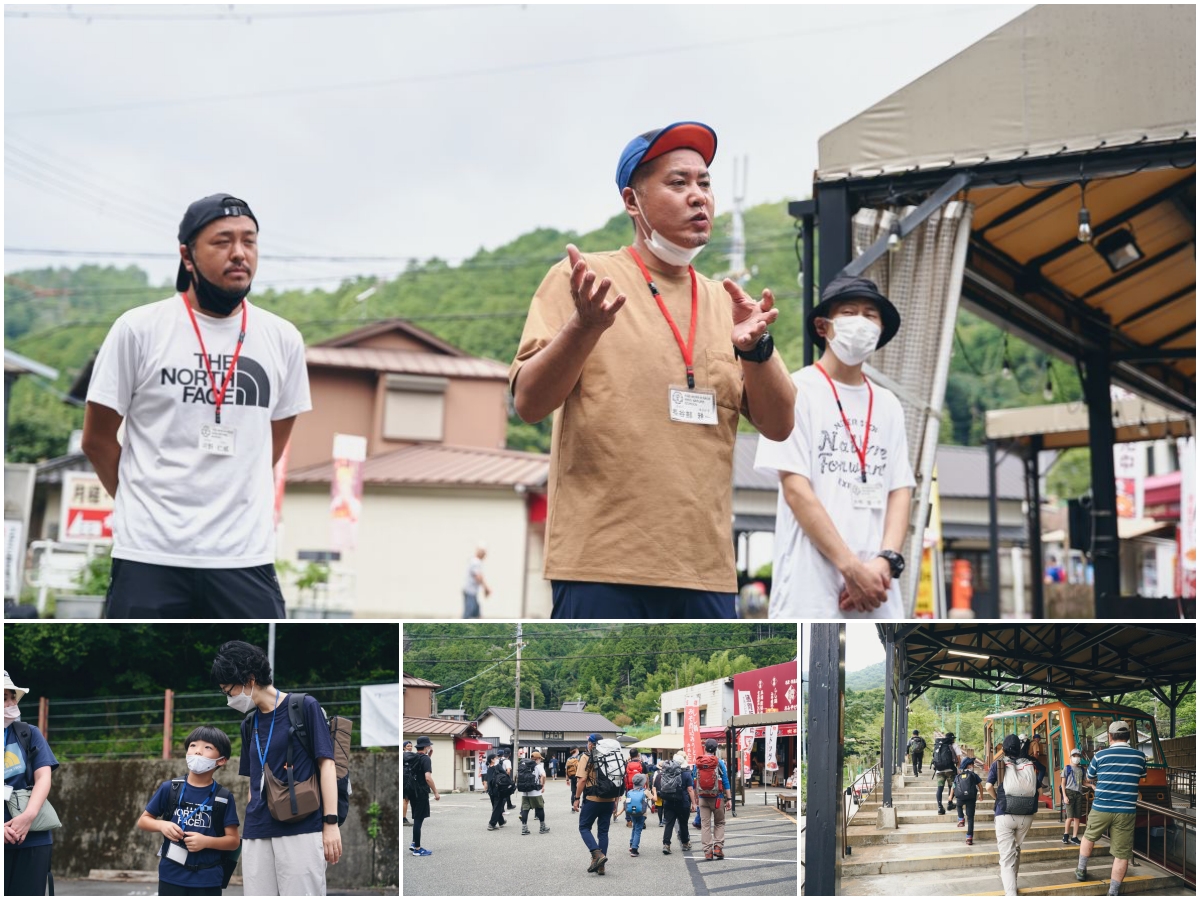 今回は「おおさか緑の百選」に選ばれた清流に沿って歩いていく、山と川と森を満喫できるプログラム。登りはケーブルカーとリフトを利用し、歩きはほぼ下りなので、登山未経験でも安心して参加できる。しかもイベントには大阪府内のザ・ノース・フェイスのショップスタッフも集結。ファミリー1組につき1~2人のサポートがあり心強い! ネイチャースクールのアドバイザー兼ガイドの長谷部雅一さんと関西エリアのスクールの校長を務めるザ・ノース・フェイス阪神梅田本店のスタッフ、角野雄一郎さんを先頭にいざ妙見山へ!