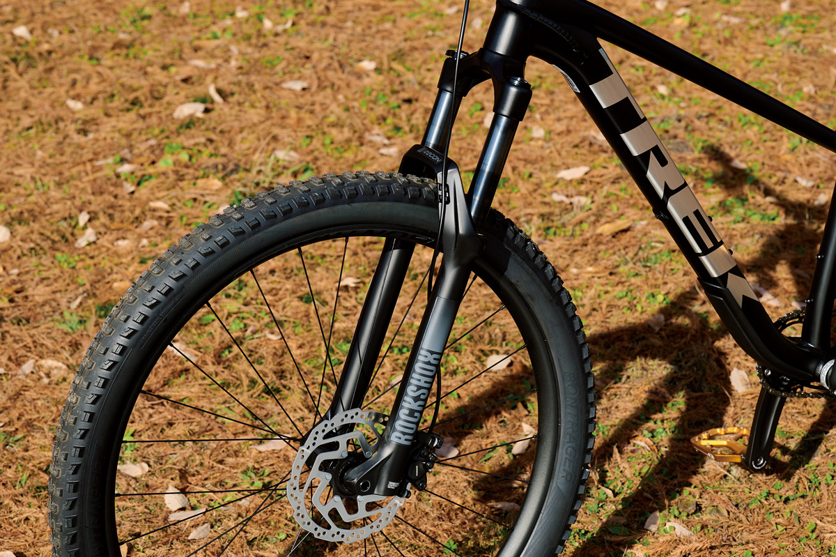 木の根っこなどでも車輪が前に進みやすい29インチホイールを装備し、タイヤ幅は衝撃吸収力に優れる2.6インチ。フロントには140㎜のロングトラベルフォークを装備し、登りに適したワイドなギヤ比のシマノ1×12速ドライブトレインなど、だれでもトレイルが楽しめるスペックのバイクとなっている。