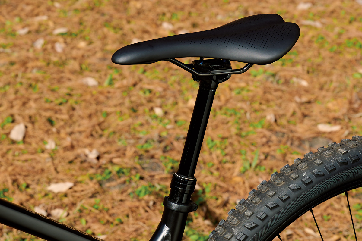 今回、加藤が乗ったのがハードテールMTB。前側にのみサスペンションがあり、後ろ側にサスペンションがない(テールが硬い=ハードテール)MTBだ。構成パーツが少なく、それにより価格も手頃なことから、初めてMTBを購入する人が選ぶことも多い。ただし、トレイルライドに持ち込むと、路面の衝撃を体でうまく吸収しないといけない。トレイルライド用としてはある意味、「腕に自信のある人向け」ともいえるのがハードテールなのだ。