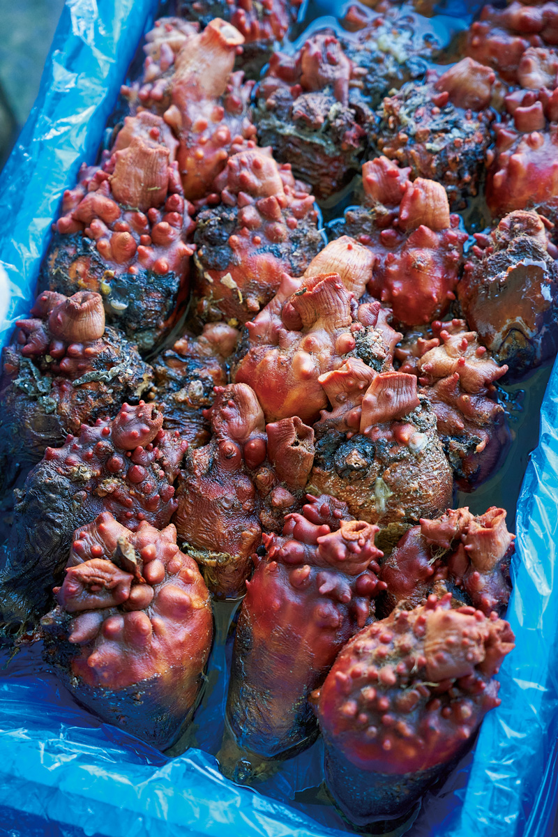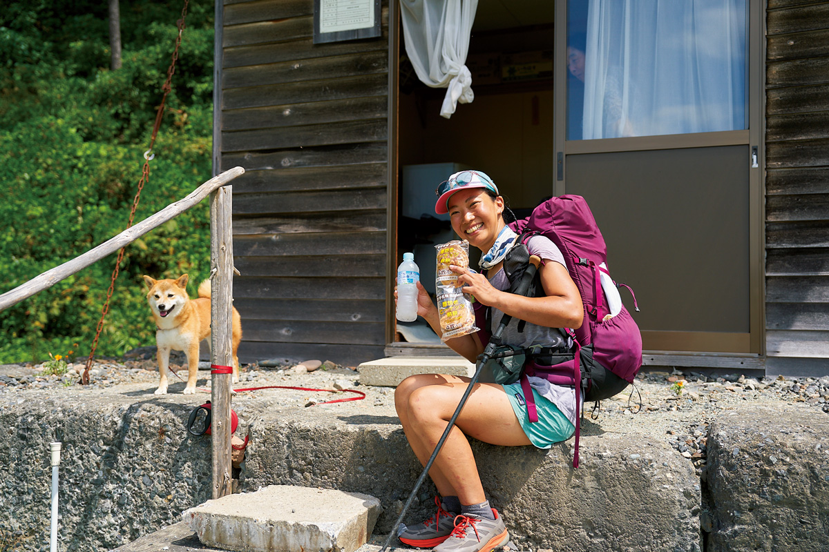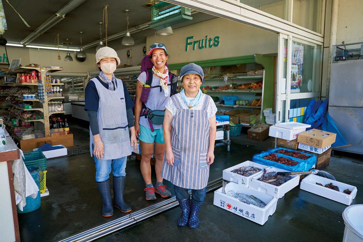 お店のおかあさんに相談し、考えた末、おいしそうなカレイとスルメイカを下処理してもらい、塩を振って持ち歩くことにした。保冷剤代わりにもなる剥きたての冷凍ホヤも併せて購入。イカの半身は刺身にしてもらい、その場でいただく。白飯と煮物もごちそうになり、しっかり腹ごしらえ。ぜいたくな朝食だ。トレイルに入る前にして〝トレイルエンジェル〞に出逢ってしまうなんて。三陸のおかあさんのあったかさに支えられながら旅は始まった。