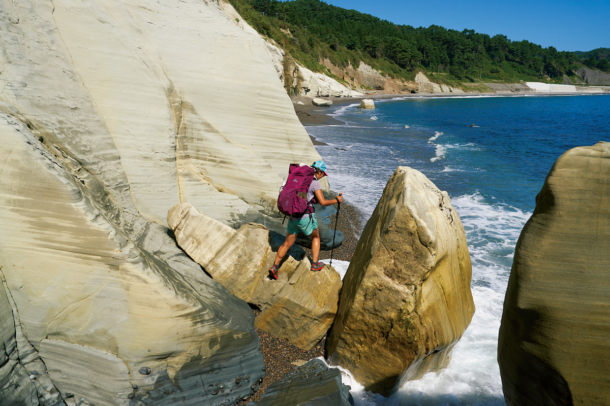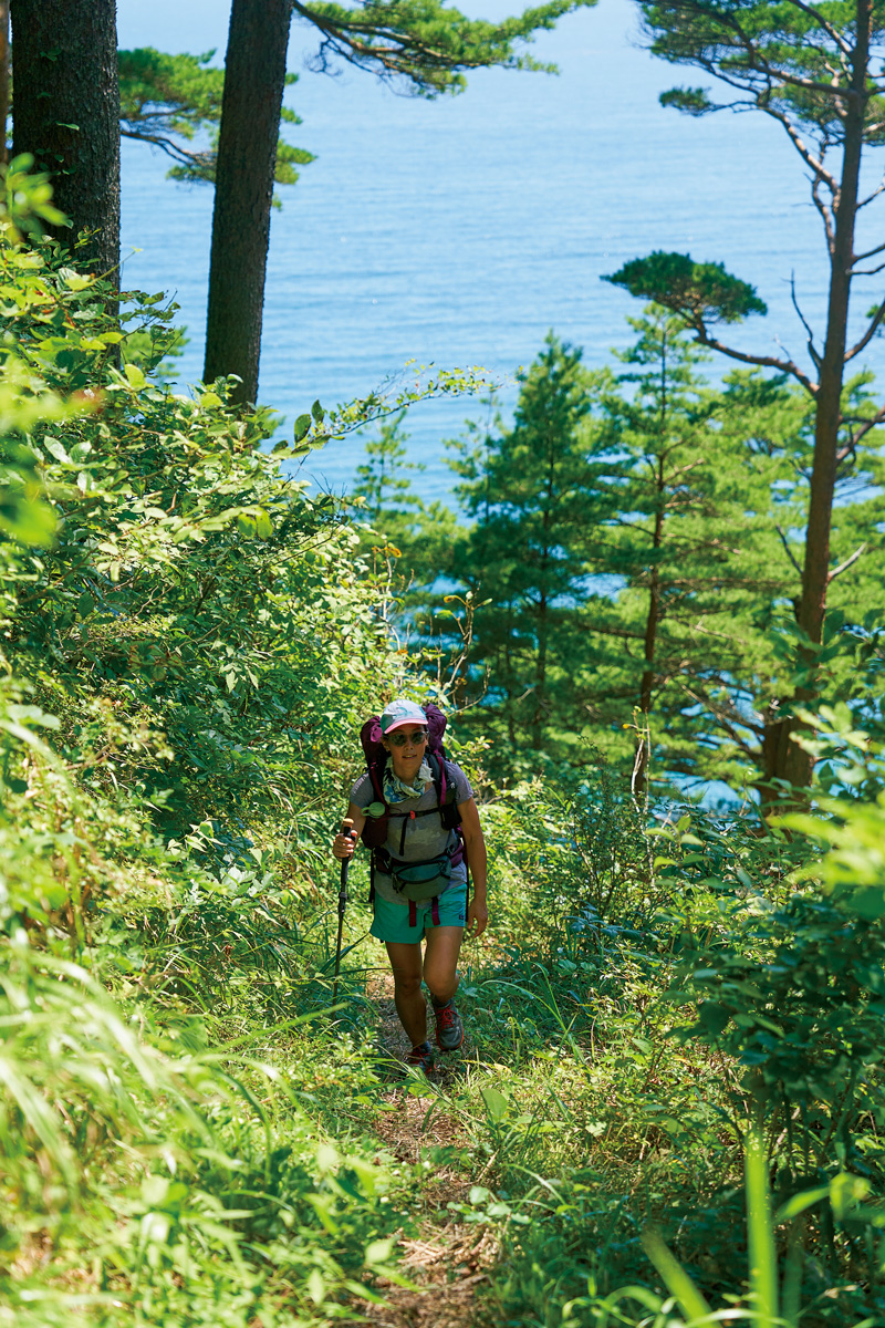 福島県相馬市から青森県八戸市までの太平洋沿岸をつないだ全長1,025㎞に及ぶロングトレイル。今回はトレイルの1区間である岩手県の普代駅からスタートし、小袖海女センターまでをつないで歩いた。2 日目は5 時間以上の峠越えもあり、エスケープルートもないのでかなりハードだ。