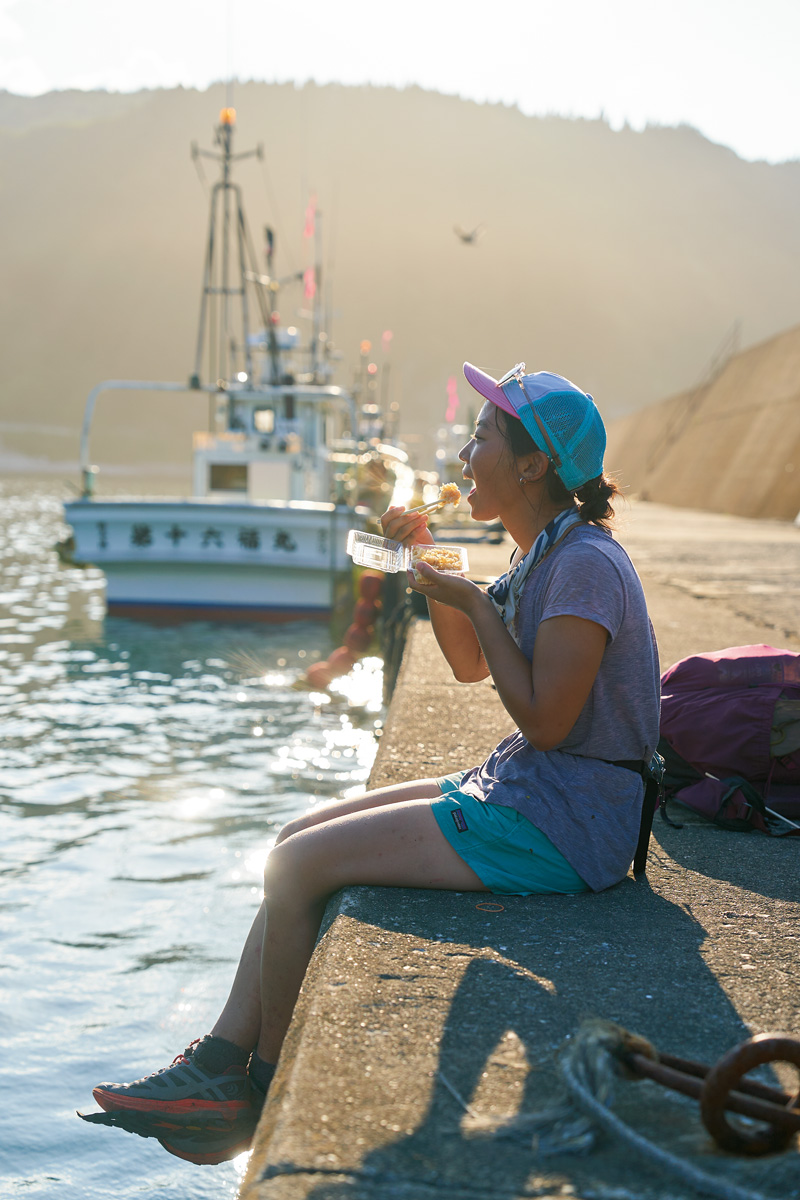 5時間ほど歩いただろうか。やっとのことで峠道から抜け出せれば、ゴールはあと少し。目の前に見える海に向かって坂道を一気に下る。数時間ぶりに嗅ぐ漁港のかおりを鼻いっぱいに吸い込みながら、西日が差す特徴的な建物に向かって最後の一歩まで歩ききる。