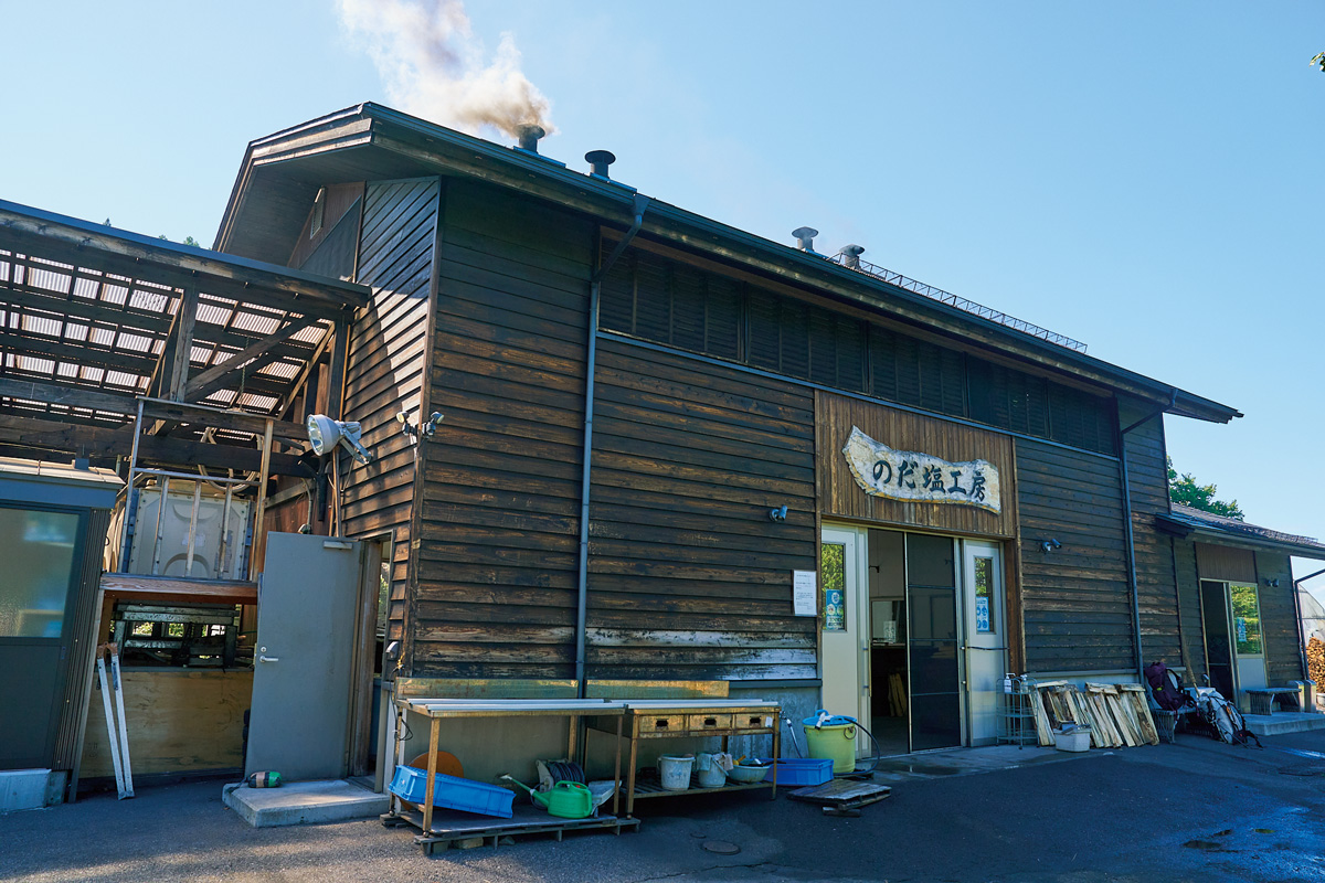 道中に昔ながらの製法で塩をつくっている「のだ塩工房」があるので訪ねてみた。工房のある野田村では古くから海水から塩がつくられていて、牛の背に乗せて内陸へ運び穀物と交換していたそう。その当時から受け継がれてきたのが「直煮製法」という海水を窯で炊いて結晶化させるつくり方で、100%海水の自然海水塩ができあがる。職人さんがじっくり5日間、手塩にかけてつくった塩をペロリと味見してみると、角がなく、まろやかな甘みが感じられる優しい味わい。汗をたっぷりかいた身体に染みわたる。