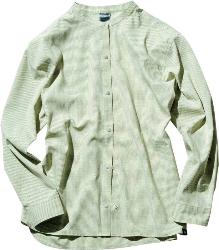 カジュアルなシーンにもマッチするスタンドカラーのロングスリーブシャツ。防虫機能とUVカット機能、速乾性を備え、襟裏と脇下には抗菌防臭のデオドラント素材を採用。サラリと肌離れもよく、汗ばむ盛夏でも快適な着心地。
