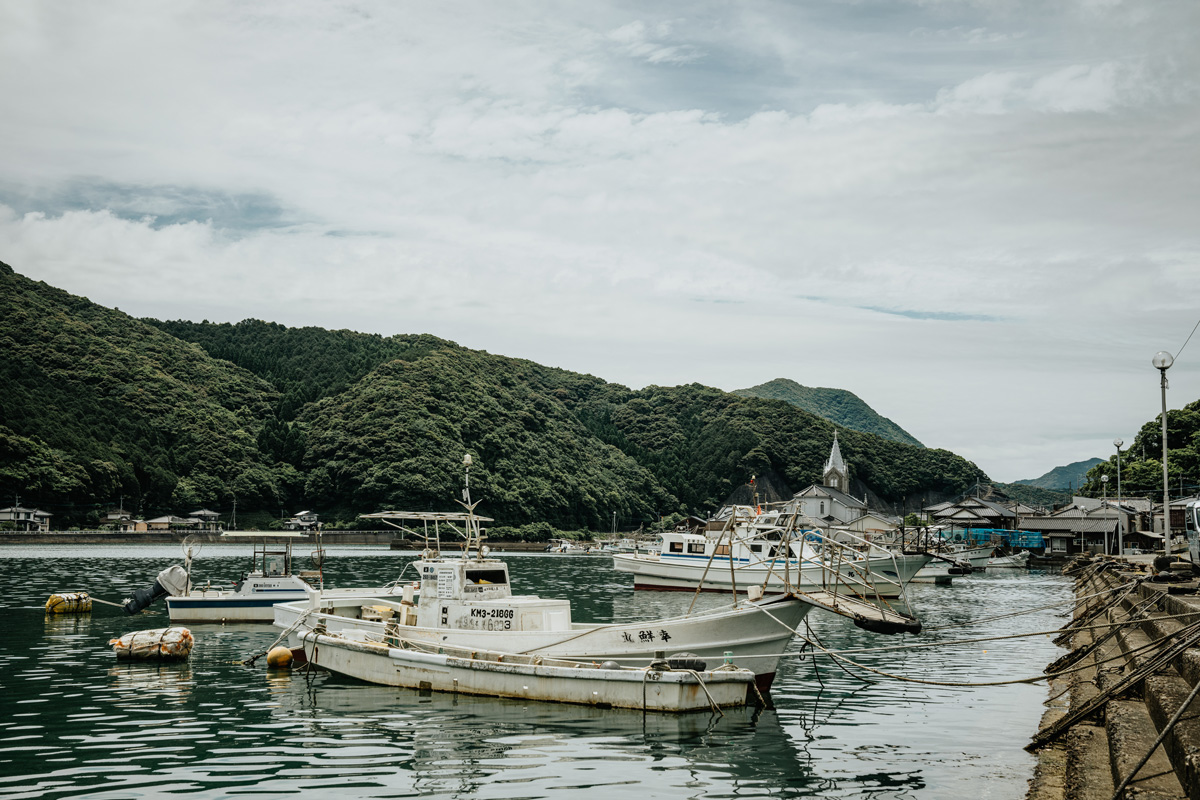 2018年に「長崎と天草地方の潜伏キリシタン関連遺産」として世界遺産に登録されたように、日本の風景に西欧風の教会が混ざり込んだ独特の景観をもつエリアでもある。釣り場を求めて自転車で走っていると、意図せずそうした遺産にぶつかる。