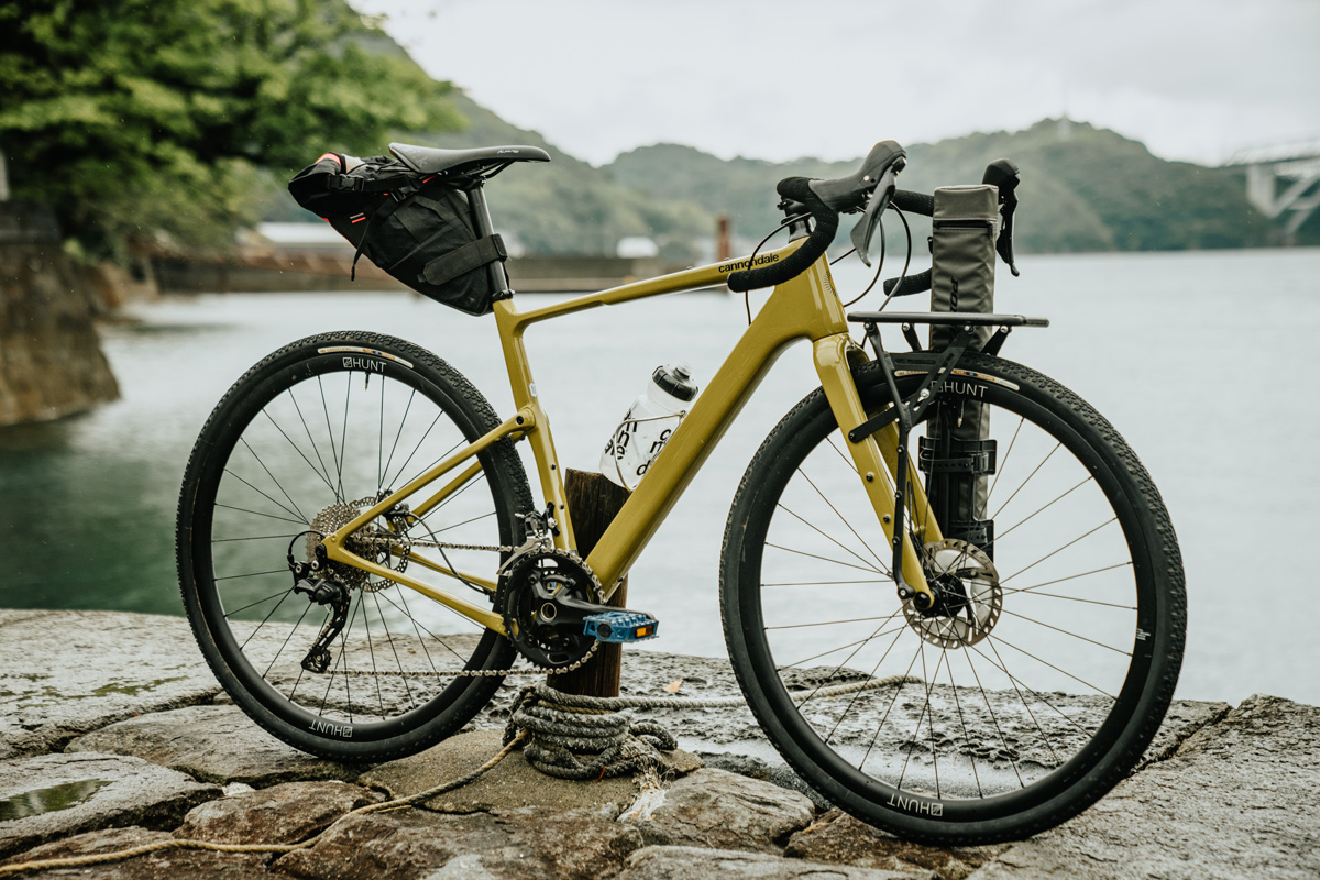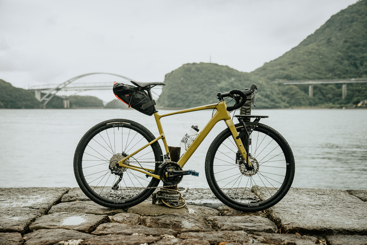 阿蘇くまもと空港で落ち合った我々のバイクは共にグラベルロード。旅と釣り道具一式を積むのに、積載性に優れながらロードバイク的な軽快性を誇るグラベルロードは使い勝手がいい。ライド&フィッシュをプッシュしているシマノスクエアのイチオシもグラベルロードだという。