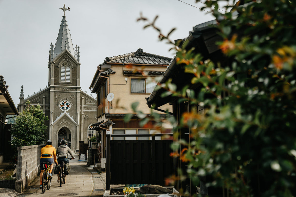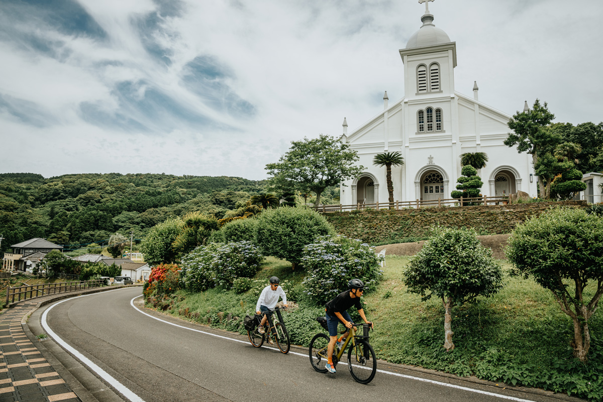 2018年に「長崎と天草地方の潜伏キリシタン関連遺産」として世界遺産に登録されたように、日本の風景に西欧風の教会が混ざり込んだ独特の景観をもつエリアでもある。釣り場を求めて自転車で走っていると、意図せずそうした遺産にぶつかる。