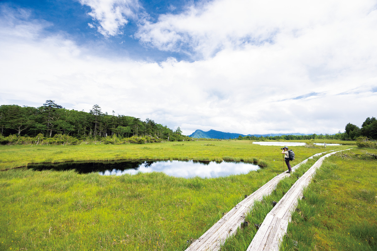 泥炭化した植物が堆積し、周囲よりも盛り上がった高層湿原は、数千年の歳月を経て生まれる。壮大だ。深い歴史やとりまく景色、空気にどっぷり浸かりたい。そうして歩いたのは、尾瀬と奥鬼怒に点在する高層湿原をめぐるルートだ。