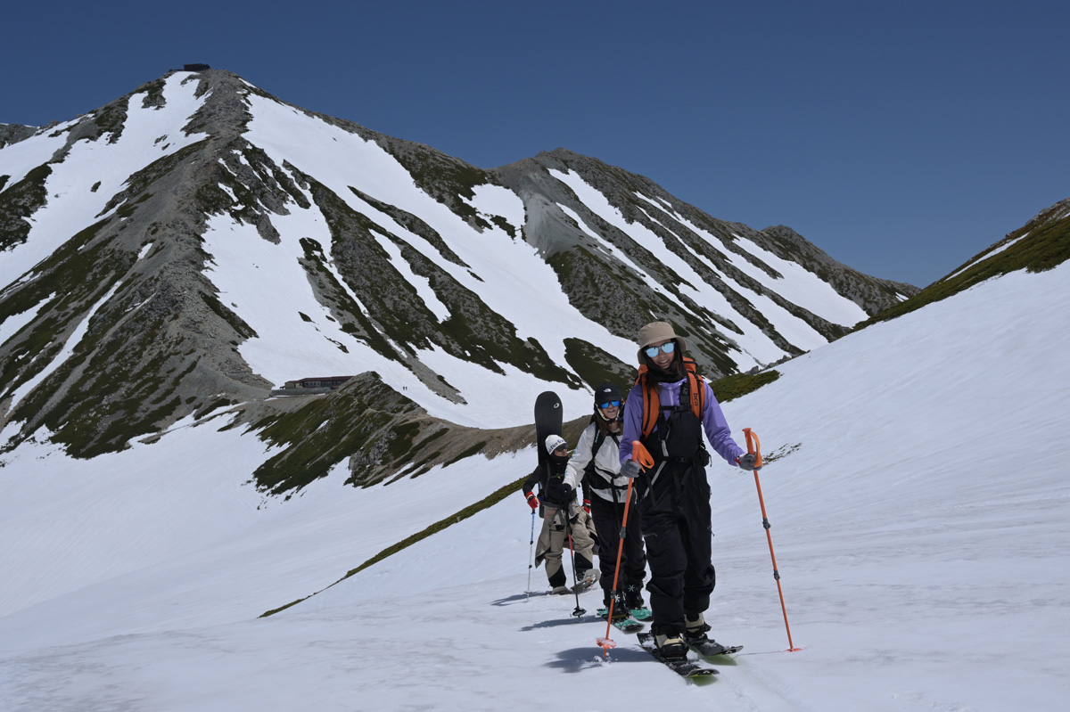 バックカントリーでは自分の足で頂上まで登るのが基本。オフシーズンの登山は、実はトレーニングを兼ねているのだ。ゲレンデで初心者スクールを行うこともある田中さんは、「最初に何を買えばいいですか?」という質問を多く受ける。そのとき、必ずボードブーツと答えているのだそう。