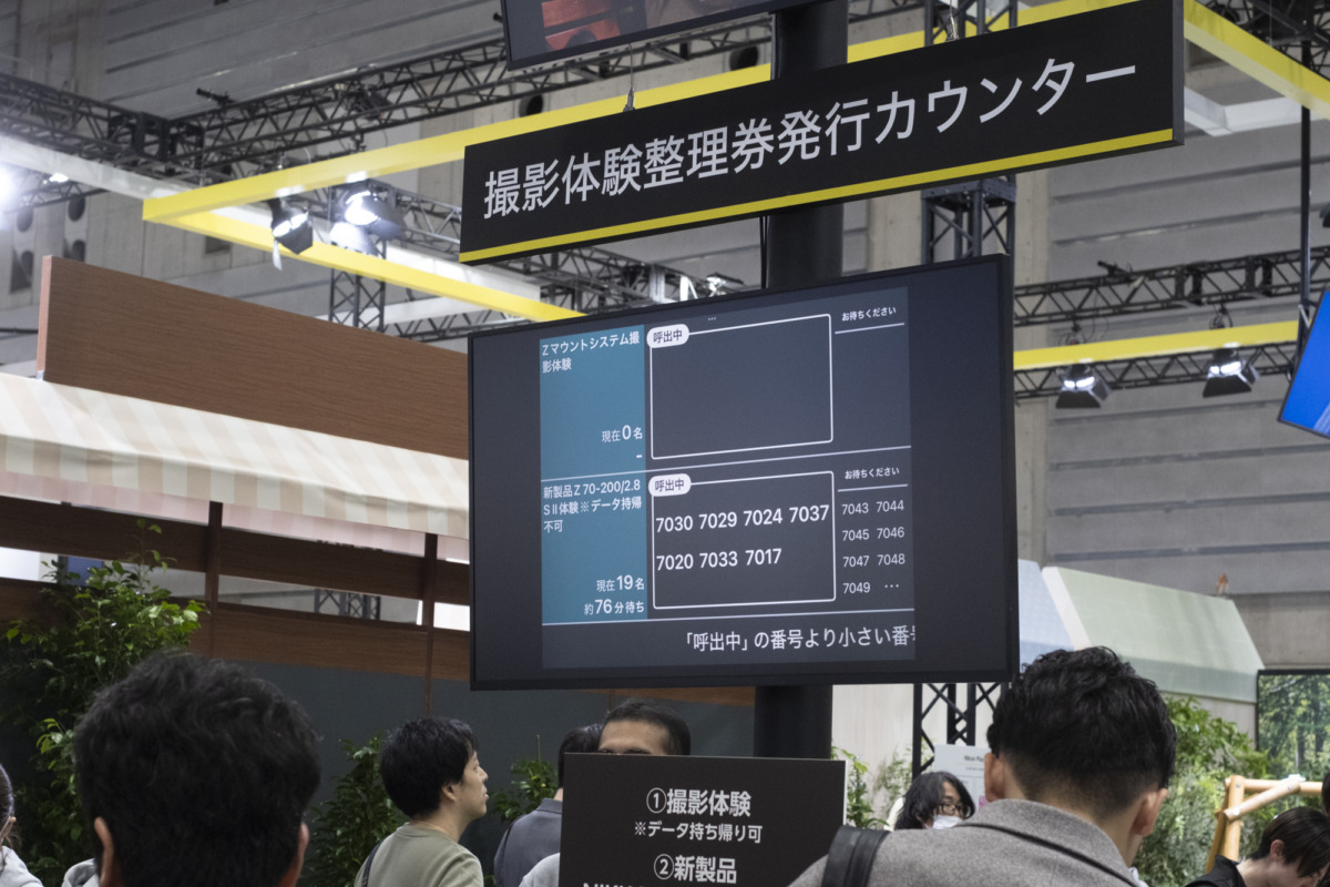 なんと、26日の初日の展示から、このレンズを体験できる整理券配布がストップする大混雑。体験されたい方はぜひともお早めに。