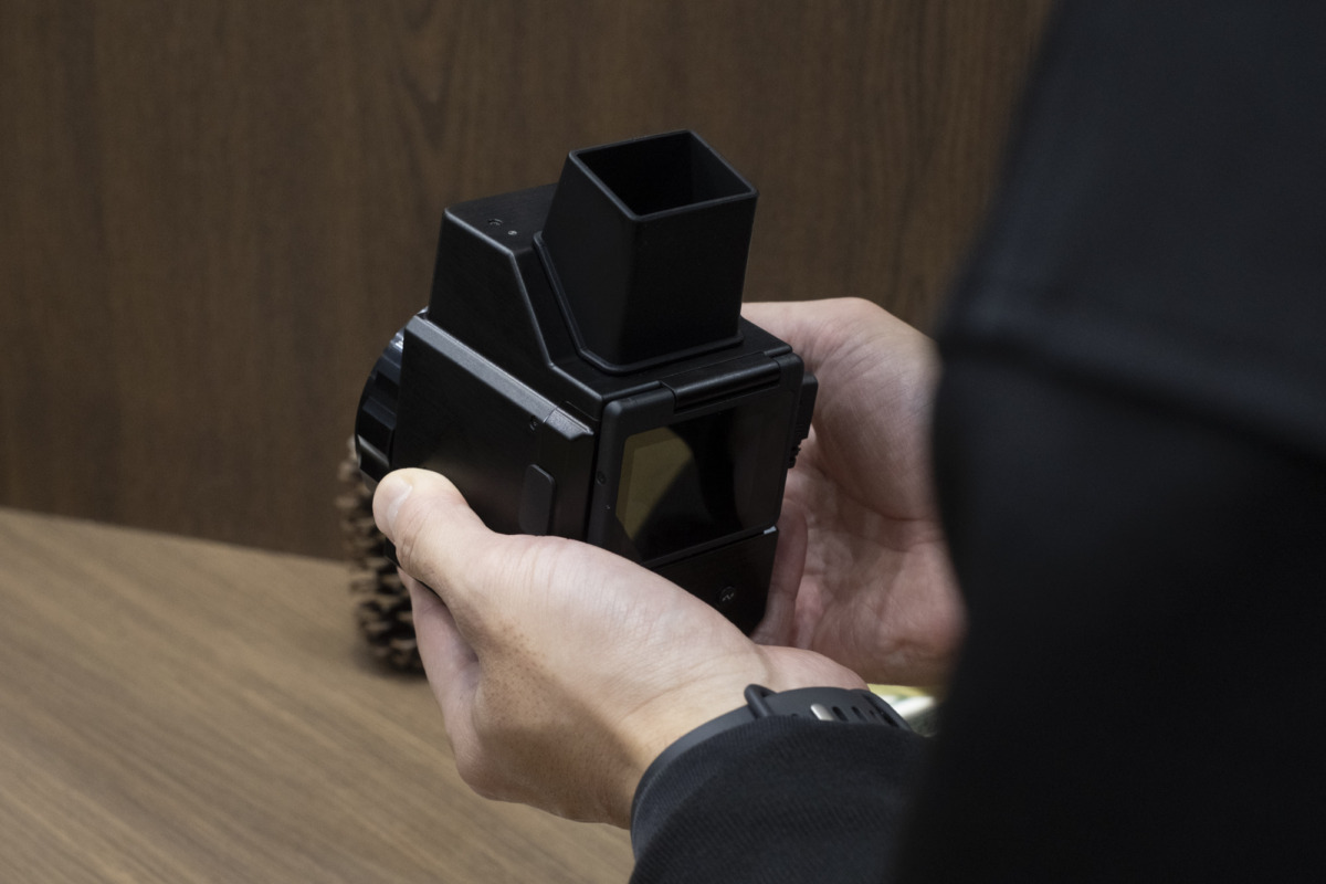 何やら見慣れないカメラの試作品が。アナログがコンセプトのカメラのようです。