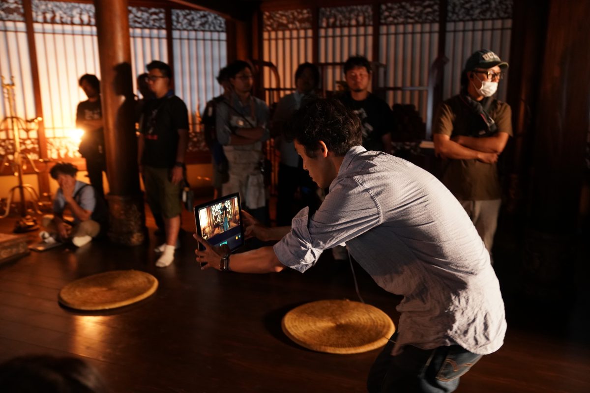 撮影現場の佐藤監督の写真を見ると、監督はいつもiPad Proを片手に指示を出されている。