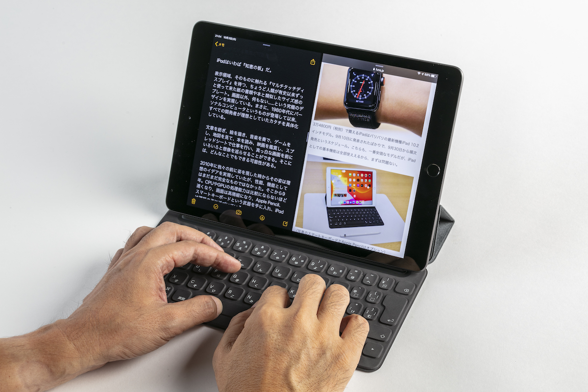 新しいiPad 10.2インチはこの秋ローンチされたiPadOS 13を標準搭載しており、マルチタスクをはじめとした最新の機能をフルに使える。しかも、スマートキーボードも、Apple Pencilも使える。iPadを初めて買う人、学生、2台目、3台目のiPadとして非常にお勧めできるモデルだ。
