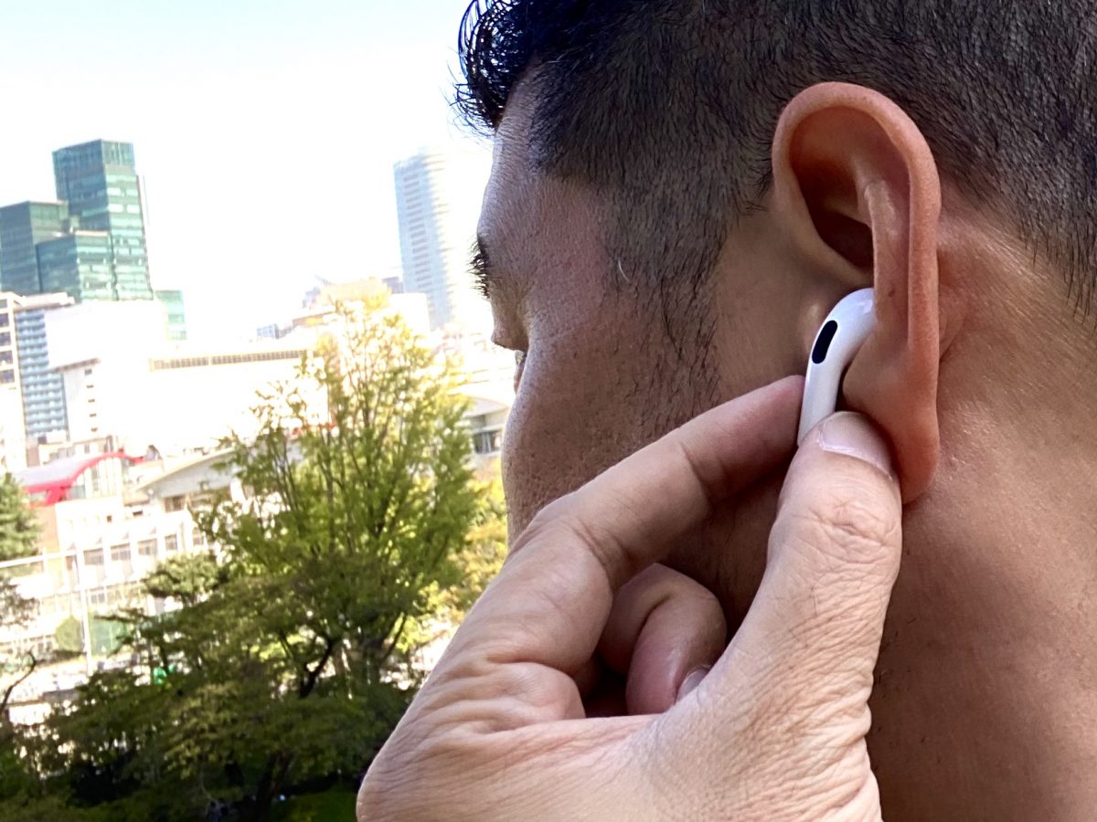 耳に入れた途端、耳障りな雑踏の音も、通りすがる他人の声も聞こえなくなる。煩わしい設定操作も必要なければ、以前のAirPodsのように耳から落ちるんじゃないかという心配もない。