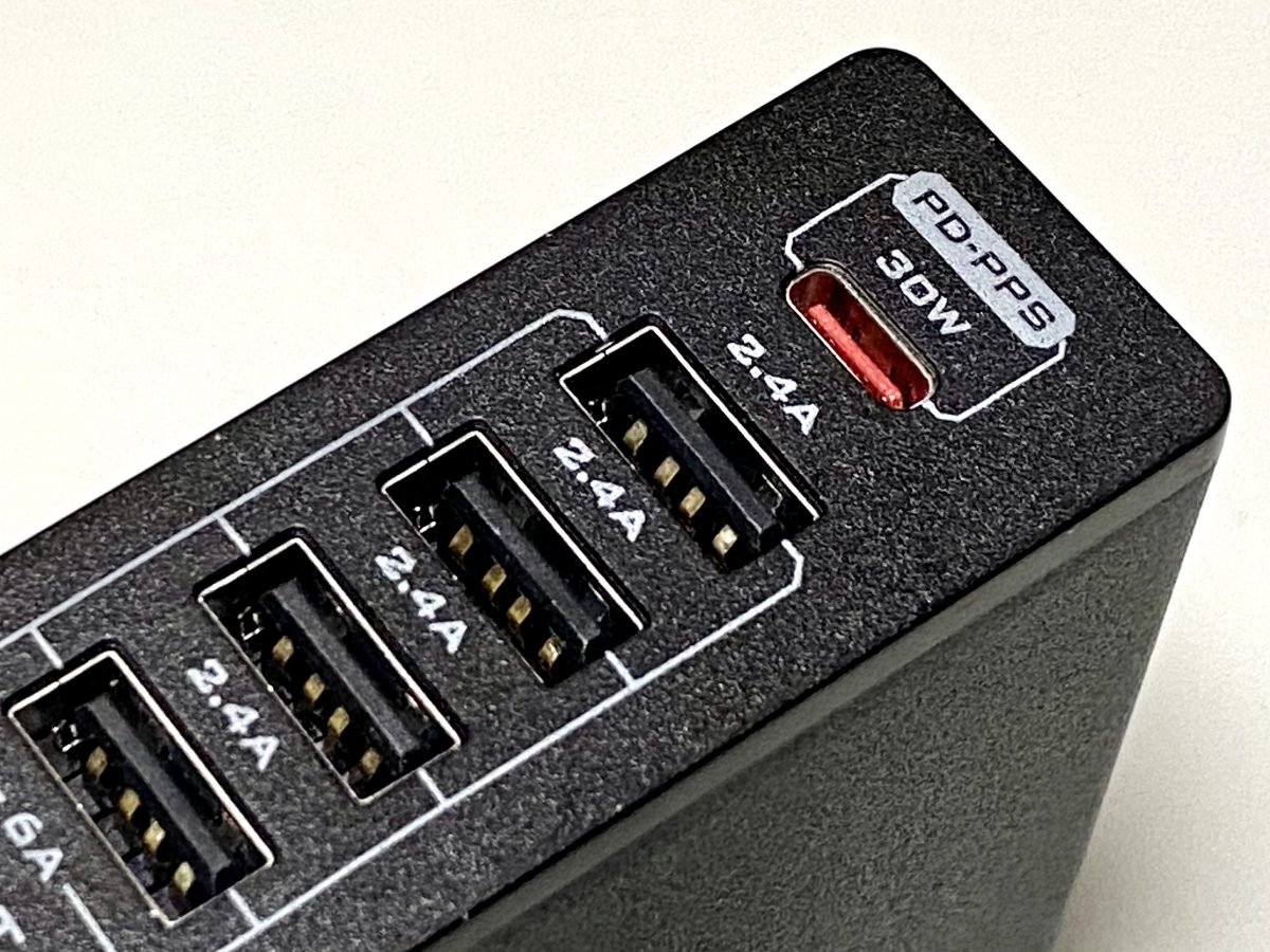 オウルテックの新型充電器、 OWL-ACPDU4S60W(USB PD 30W Type-C× 1+USB Type-A×4の充電アダプター)にこのPPSがついているが、機器側(パソコンやスマホ)側が対応しないと、この制御は使われることはないわけで、いまのところ宝の持ち腐れだが、将来的には活用できるはずだ。