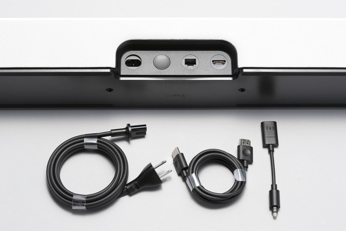 接続は、あればHDMI ARCという端子を使う。HDMIと同じコネクターだが、オーディオの接続に使うらしい。我が家のテレビにはなかったので、それに同梱されている『光オーディオアダプター』というアダプターを噛ませて、光オーディオ端子に接続した。