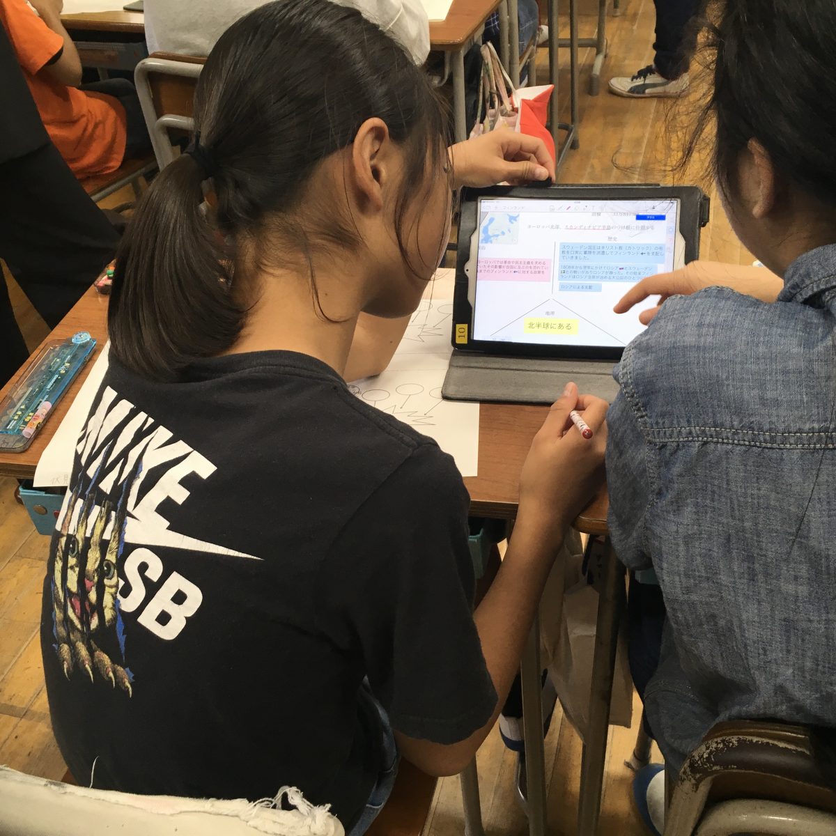 当初はWindowsのタブレットの導入を構想していたが、立ち上がりに時間がかかるなどトラブルが多く、直感的に操作できて、無料で使えるアプリがたくさんあるiPadの評価が高くiPadの導入が決定した。iPadは先生たちのやりたい授業を後押ししてくれるような使い心地なのだという。