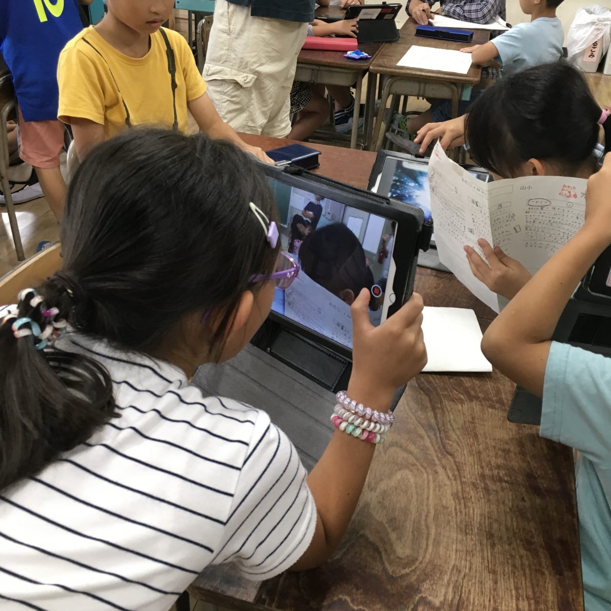 写真を撮ってレポートに貼ることもできるし、動画を撮ってそれを編集することもできる。スローモーション動画も教育の場面では便利に使えるという。