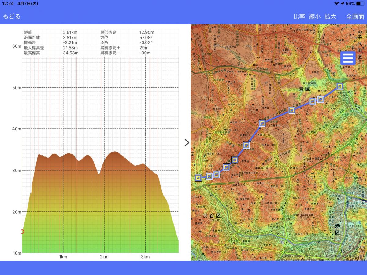 スーパー地形は『断面図』を作る機能があるので、両者の地形の違いを可視化してみた。こういう検証がiPadだけでできるのだからよい時代である。