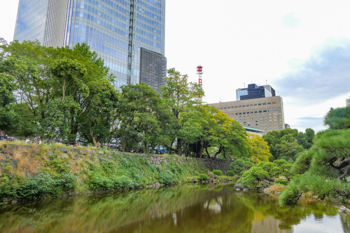 都心に忽然と現れる四角くて広い公園であるが、日比谷交差点にある入口の脇に『江戸城の石垣』がそのまま残されており、その脇にある池(心字池)は外濠の跡なんだそうな。