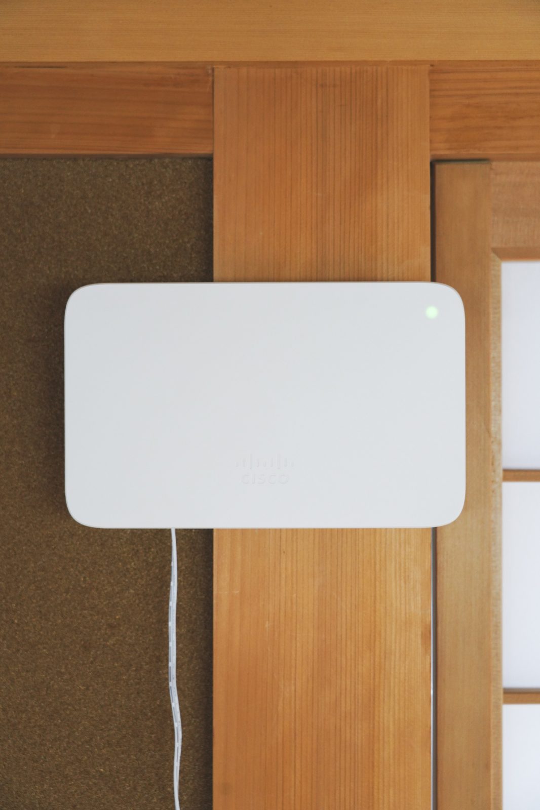 SUSAMI LIFE HAUSのような純和風家屋に取り付けても、まったく違和感がないのは、Meraki Goがほとんど自己主張しないシンプルなデザインだから。欧風な建物でも、和風な建物でも問題なく風景に溶け込んでくれる。