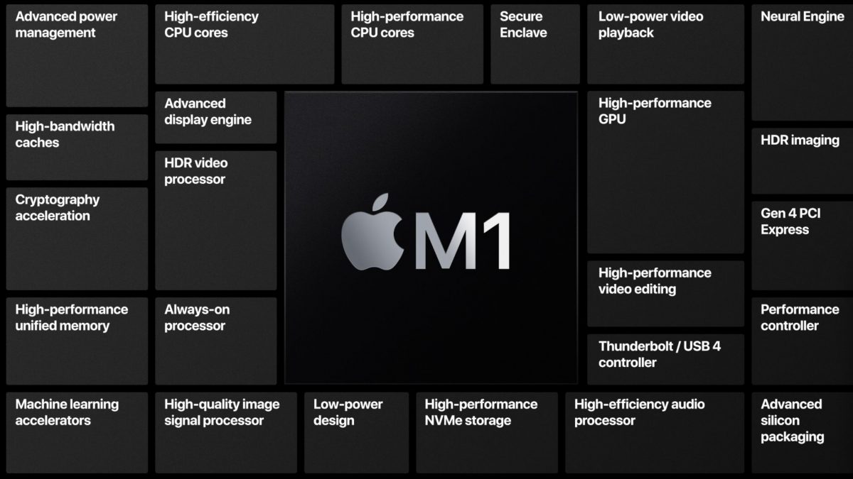 利用しているテクノロジーは共通のものだが、M1チップのデザインとアーキテクチャーはMacのために完全に新規で設計されたもので、Macで行う処理に最適化して設計されている。