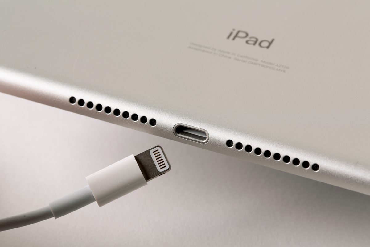 スピーカーホールは左右ともに10個。電源や同期のためのケーブルはLightningコネクター。iPhoneと同じなので汎用性は十分高い。