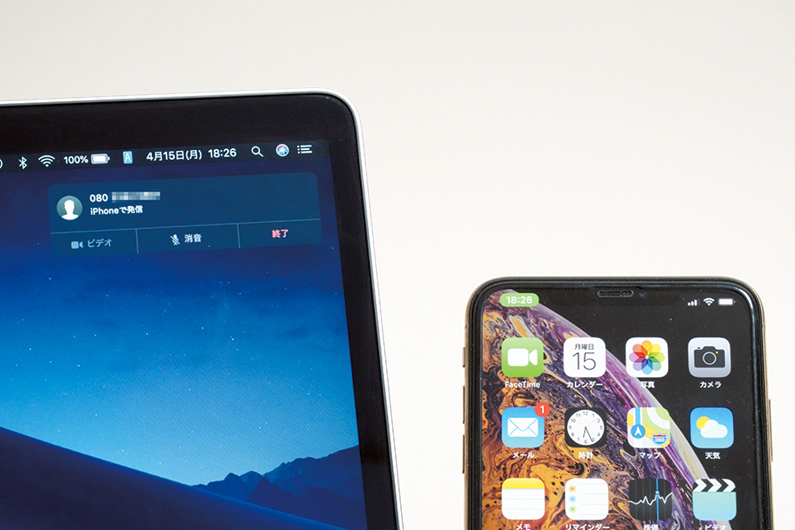 『FaceTime』の環境設定で『iPhone から通話』にチェックを入れておけば、MacBookから発信、着信可能だ。