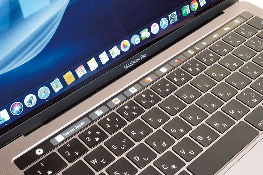 タッチ操作できるディスプレイ『Touch Bar』はMacBook Pro だけの装備。本機能の評価は分かれているが、カスタマイズの自由度を広げるなど機能強化して欲しい。