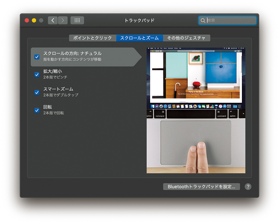 タッチパッド(トラックパッド)の操作方法も作業効率を大きく変える。MacBookは多くのジェスチャを備えており、それぞれカスタマイズ可能。Windowsノートで常用していたジェスチャはMacBookでも同じ操作に設定しておこう。今回は画面スクロールの変更方法を解説した。