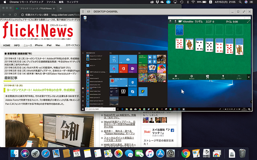 『Chromeリモートデスクトップ』をインストールすれば、MacBookからWinノートを操作可能。もちろん逆もOKだ。