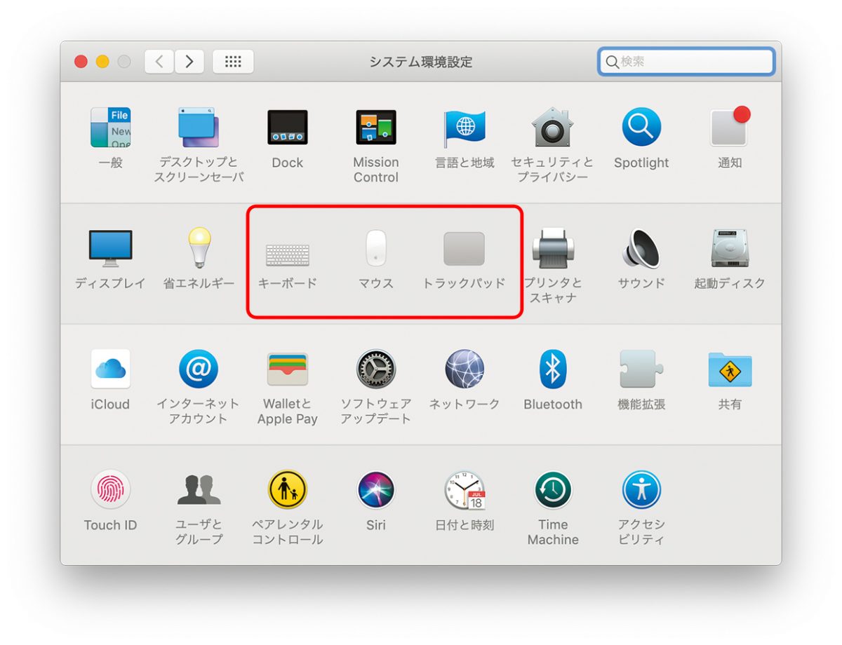 操作に関する設定は『システム環境設定』の中段にあるキーボードなどで行う。また、アプリの起動などであればiPhone と同じくSiriを使って行うこともできる。