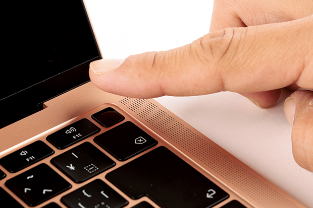 MacBookの操作はキーボード、そしてその手前にあるトラックパッドで行う。トラックパッドは指で操作するもので、スマホやタブレットのように直感的に矢印で描かれたカーソルを動かす。さらに複数の指を使うジェスチャーも便利。またMacBookシリーズのトラックパッドは感圧式で、物理的には動かないがTapTicエンジンが動いたような振動を与える。トラックパッドが使いにくい場合はマウスを使ってもOK。キーボードも外付けのものを使える。