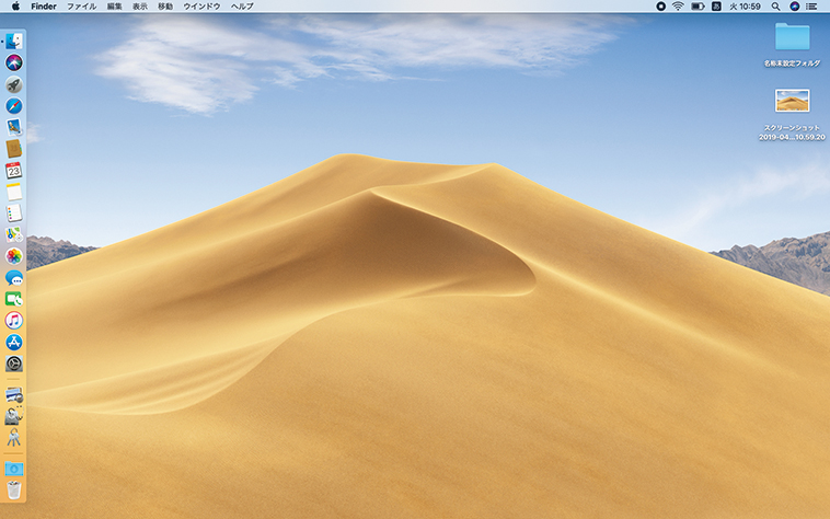 各種アプリやゴミ箱などを登録し、すぐに起動できるようにするDock。追加や削除、並べ替えも可能。さらに未使用時にDockを隠したり、表示位置を左部に変更できる。