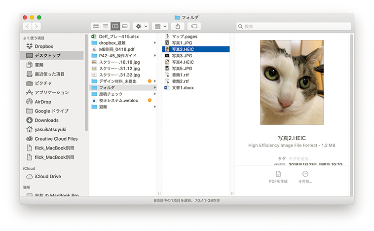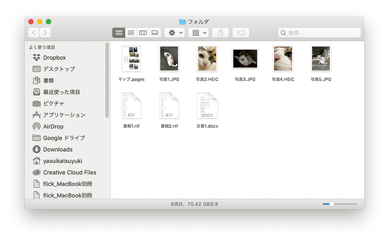 Finder のサイドバーにあるフォルダーならファイルの移動も簡単。ファイルをドラッグして、任意のフォルダ上にドロップ。