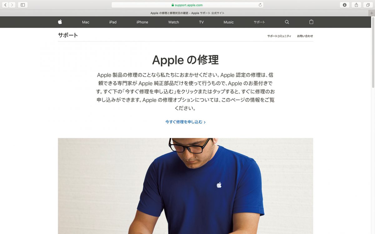 アップルのWebサイトには修理に関する専用ページがある。パソコンに疎い人でも原因の確認、簡単にできるメンテナンス方法が紹介されているので、まずは確認してみよう。