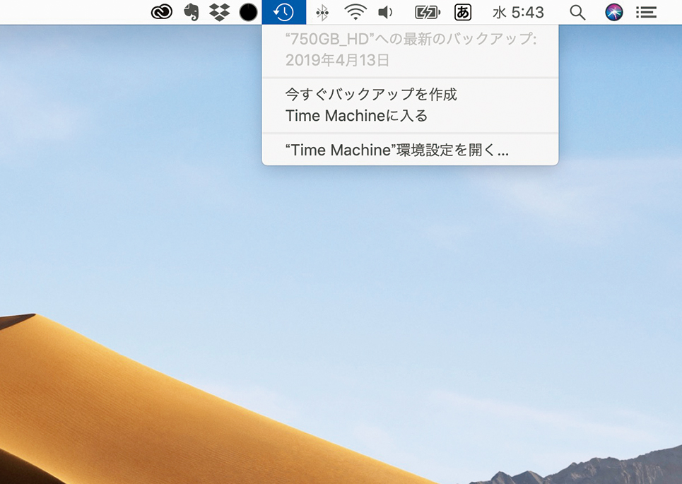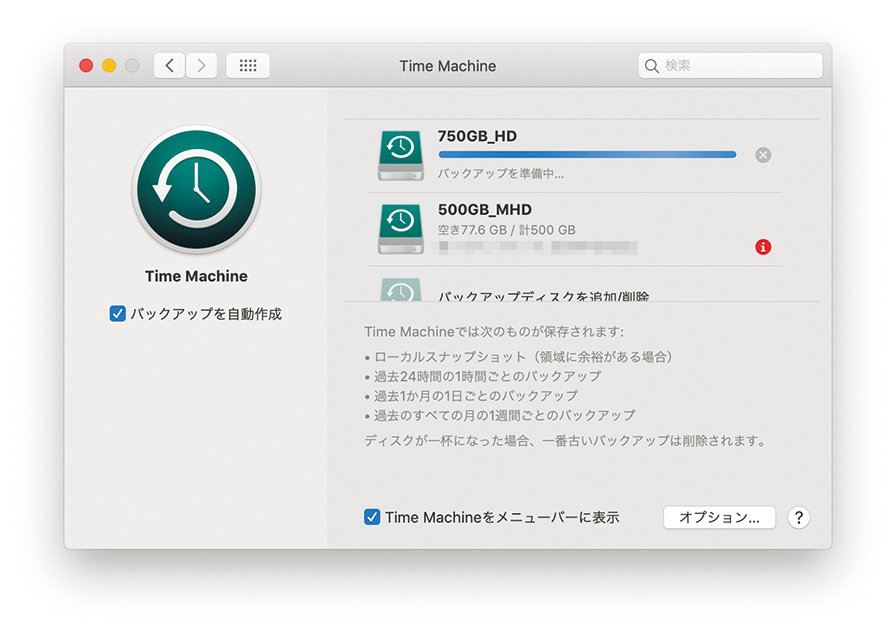 突然訪れるトラブルに備えて、Time Machineでバックアップ