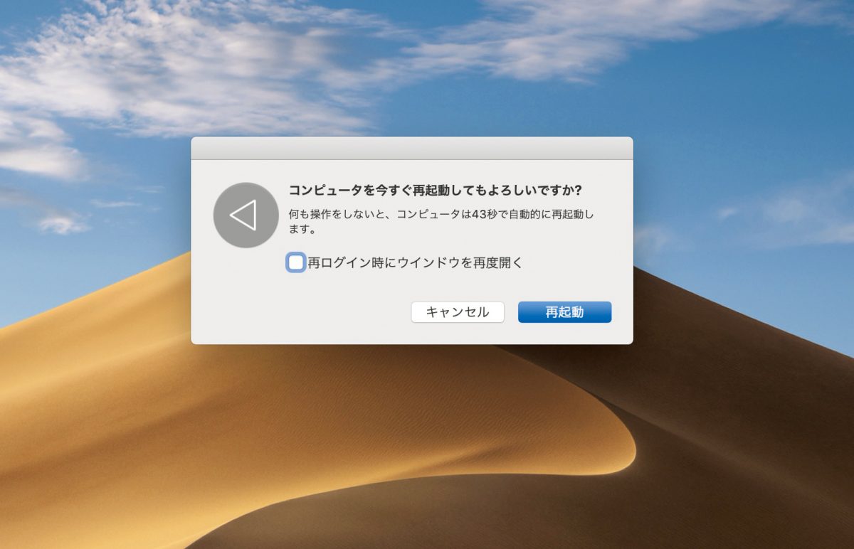 電源をオフにせずスリープを使い続けていると、調子が悪くなることもある。そんな時は『再起動』してみる。また、フリーズした場合、電源ボタンを長押しすると強制終了になる。