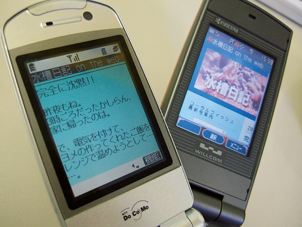 みんな折り畳み式の携帯電話を使っていた。携帯電話では、簡略化されたウェブサイトを見ることしか出来なかった。