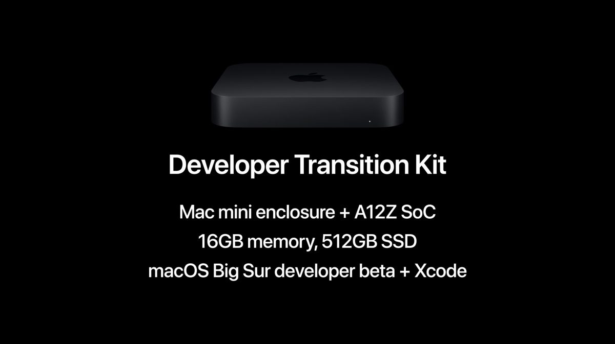 6月に募集された初期の開発者用のDeveloper KItとして販売されたのはiPad Proの2019年モデルに搭載されてるA12Z BionicチップをMac miniに搭載し、開発者向けのmacOS 11 Big Surのアップルシリコンで動作するバージョンをインストールしたものだった。