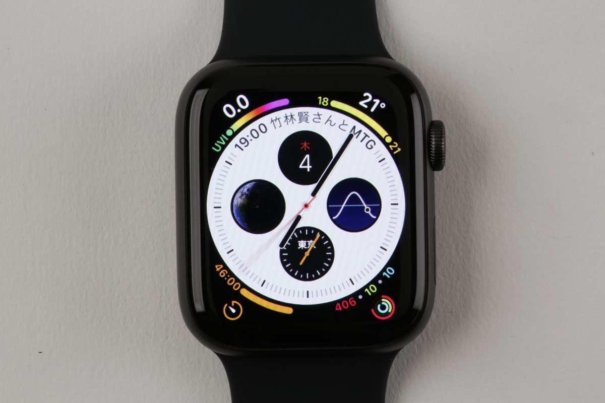 Series 4の標準的なウォッチフェイス。コンプリケーションを8つ表示することができる。