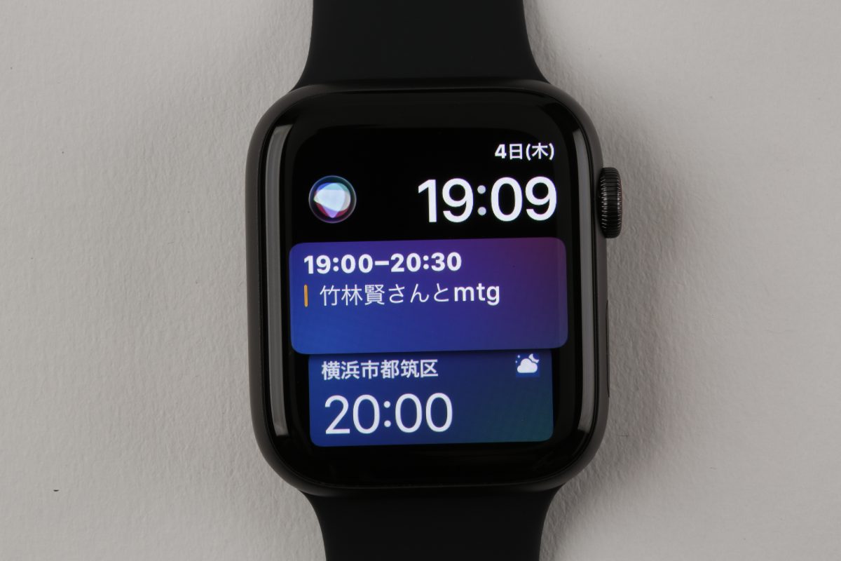 期待高まるSiriウォッチフェイス。何を表示するかはiPhone側で設定することができる。