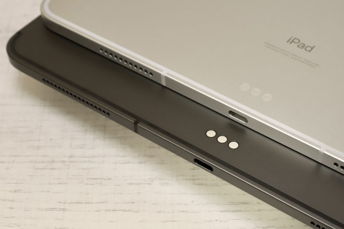 従来は、iPad Proの12.9インチは、17個の穴が開いていたのだが、11個に減ってる。厚みが増えたから穴の直径を大きくすることができたのか? それとも内部スペースが狭くなったのかは良くわからないが、おそらく内部のスピーカーなどの構造の変化があるのだと思う。