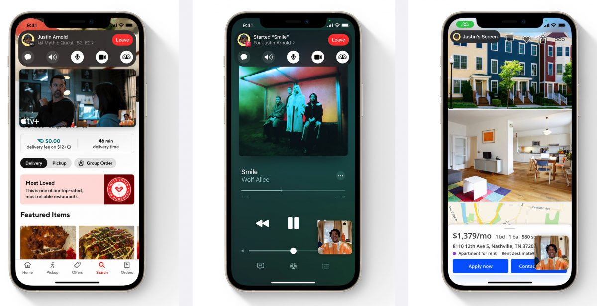 たとえば、FaceTimeに参加している人と一緒に映画を見るところもできるし、音楽を楽しむこともできる。地図アプリなどアプリの画面を共有して、一緒に旅のルートを考えたり、引っ越し先を考えたりもできる。