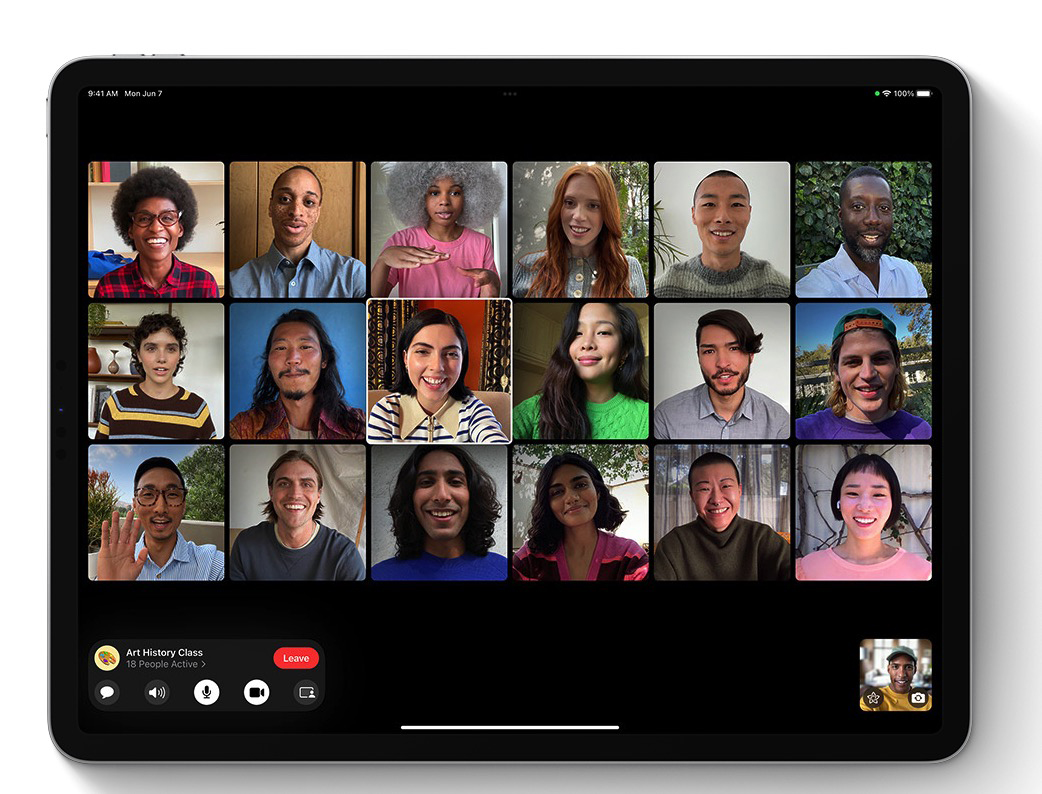 FaceTimeも単なるテレビ電話のサービスから、ビデオ会議のサービスに変化しようとしている。多くの人をタイル表示できるようになったのもその一環だ。もちろん、資料などの画面共有も可能だ。