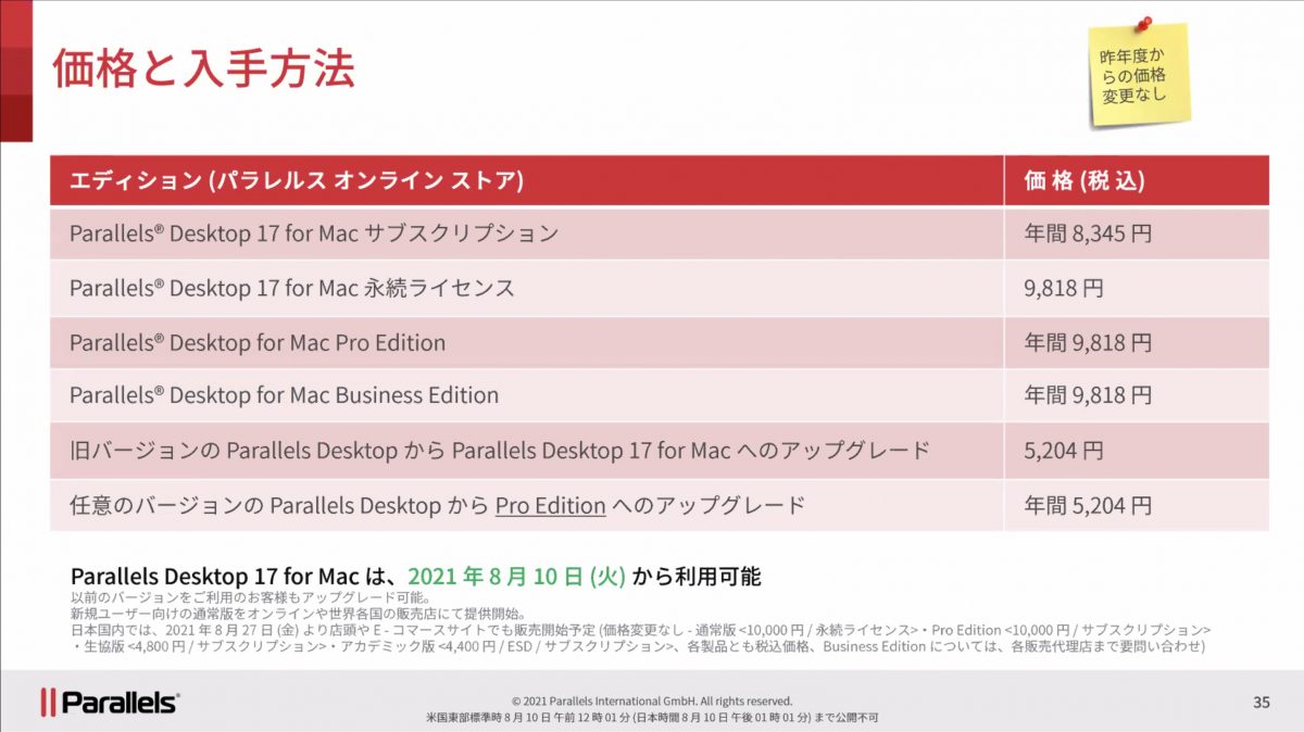 本日、Parallels Desktop 17が発表され、即日利用可能となった。