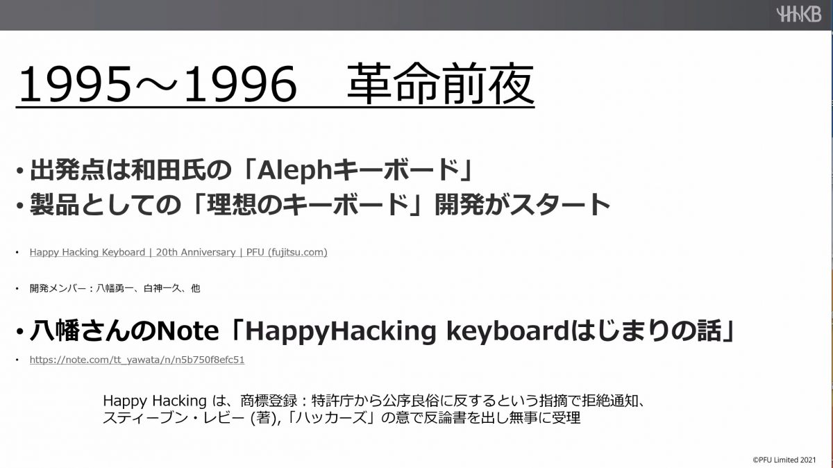 1995年、東京大学名誉教授、和田英一先生が提案した『Alephキーボード』というコンセプトと、PFUが出会い、HHKBというプロダクトが胎動を始める。