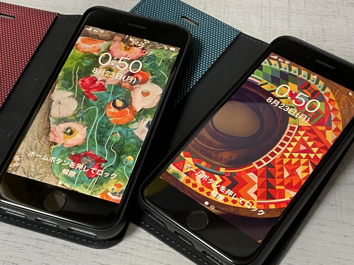 わが家は母が日本画家で、父は彫刻家なので、それぞれの作品を壁紙として設定した。