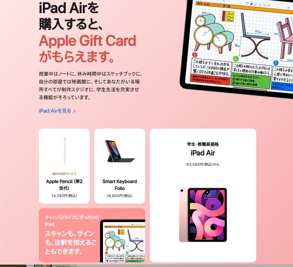 学生さんは、MacやiPadを購入する予定なら、ぜひこのキャンペーンで購入されるといいだろう。